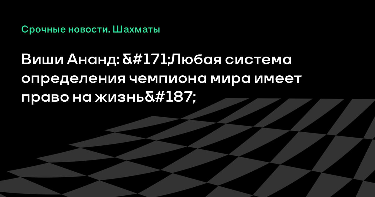 Виши Ананд: «Любая система определения чемпиона мира имеет право на жизнь»