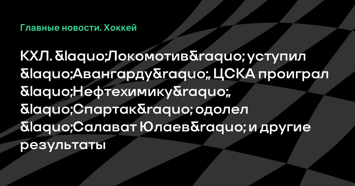 КХЛ. «Локомотив» уступил «Авангарду», ЦСКА проиграл «Нефтехимику», «Спартак» одолел «Салават Юлаев» и другие результаты