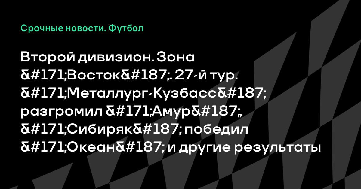 Второй дивизион. Зона «Восток». 27-й тур. «Металлург-Кузбасс» разгромил «Амур», «Сибиряк» победил «Океан» и другие результаты