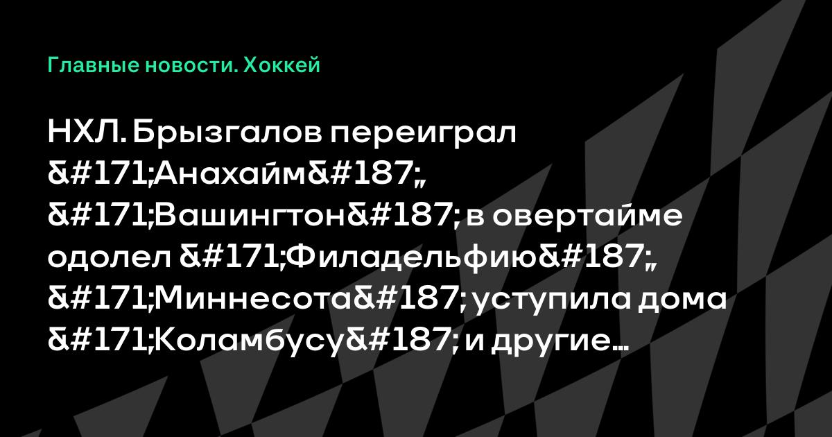 НХЛ. Брызгалов переиграл «Анахайм», «Вашингтон» в овертайме одолел «Филадельфию», «Миннесота» уступила дома «Коламбусу» и другие результаты