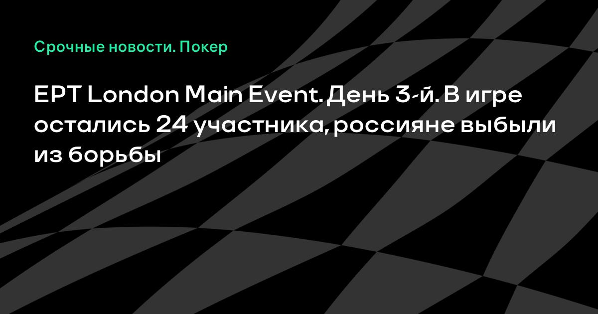 EPT London Main Event. День 3-й. В игре остались 24 участника, россияне выбыли из борьбы