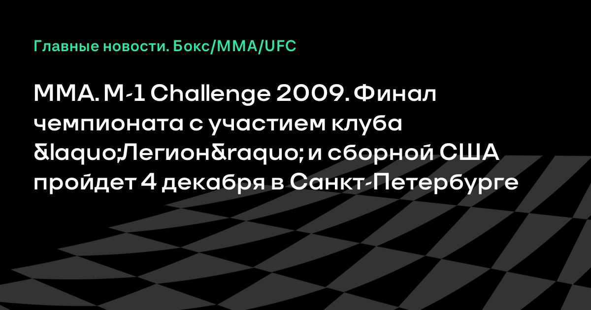 MMA. M-1 Challenge 2009. Финал чемпионата с участием клуба «Легион» и сборной США пройдет 4 декабря в Санкт-Петербурге