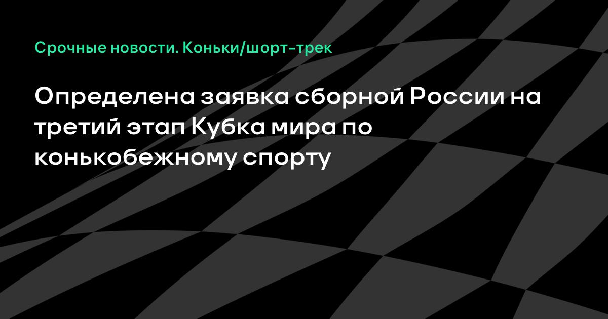 Определена заявка сборной России на третий этап Кубка мира по конькобежному спорту, который состоится 1-2 декабря в Коломне. Об этом сообщил глава информационной службы конькобежного центра «Коломна» Сергей Леонов.
