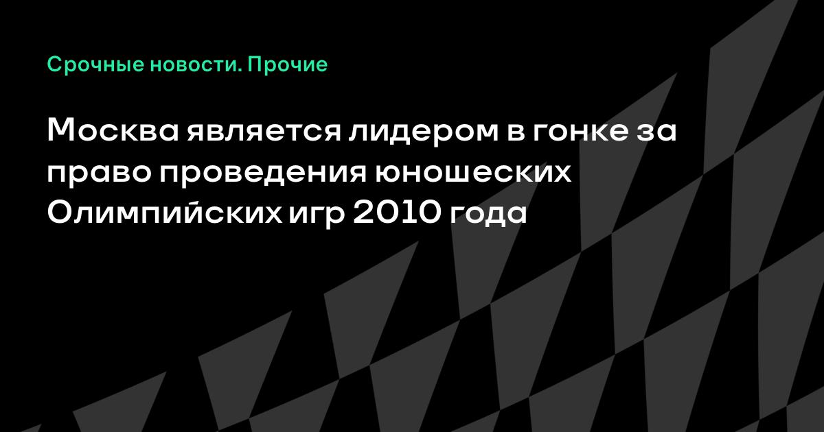 Москва является лидером в гонке за право проведения первых юношеских Олимпийских игр 2010 года. Об этом сообщил сегодня на пресс-конференции заместитель мэра в правительстве Москвы по вопросам межрегионального сотрудничества, массовых коммуникаций, спорта и туризма Валерий Виноградов. При рассмотрении в Международном олимпийском комитете заявка Москвы, по его словам, набрала наибольшее количество баллов.