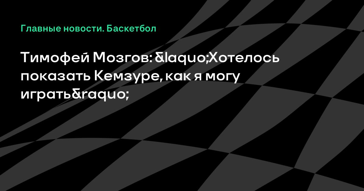 Центровой «Химок» Тимофей Мозгов стал более уверенным в себе после чемпионата Европы, стремится к развитию профессиональных качеств и навыков и сравнивает Кястутиса Кемзуру и Серджо Скариоло.