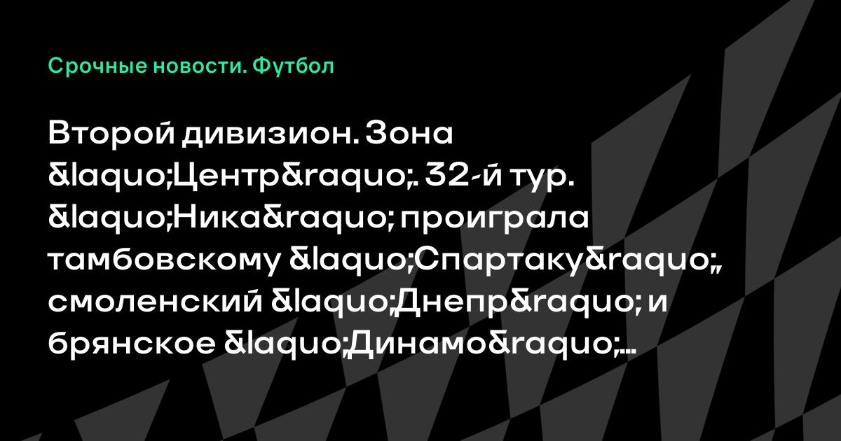 Второй дивизион. Зона «Центр». 32-й тур. «Ника» проиграла тамбовскому «Спартаку», смоленский «Днепр» и брянское «Динамо» разошлись миром и другие результаты