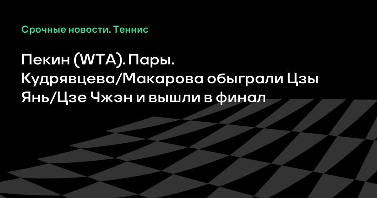 Пекин (WTA). Пары. Кудрявцева/Макарова обыграли Цзы Янь/Цзе Чжэн и вышли в финал