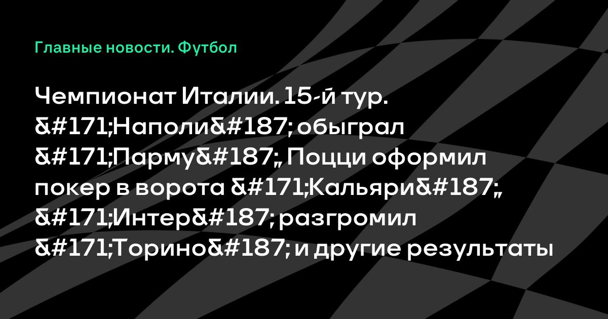 Чемпионат Италии. 15-й тур. «Наполи» обыграл «Парму», Поцци оформил покер в ворота «Кальяри», «Интер» разгромил «Торино» и другие результаты