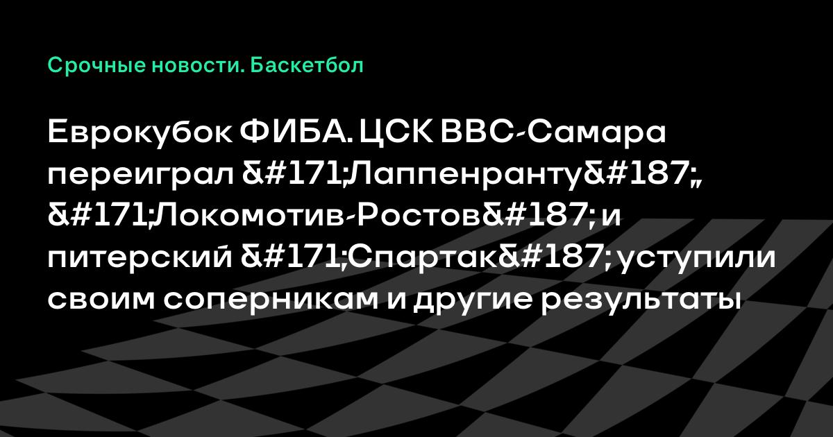Еврокубок ФИБА. ЦСК ВВС-Самара переиграл «Лаппенранту», «Локомотив-Ростов» и питерский «Спартак» уступили своим соперникам и другие результаты