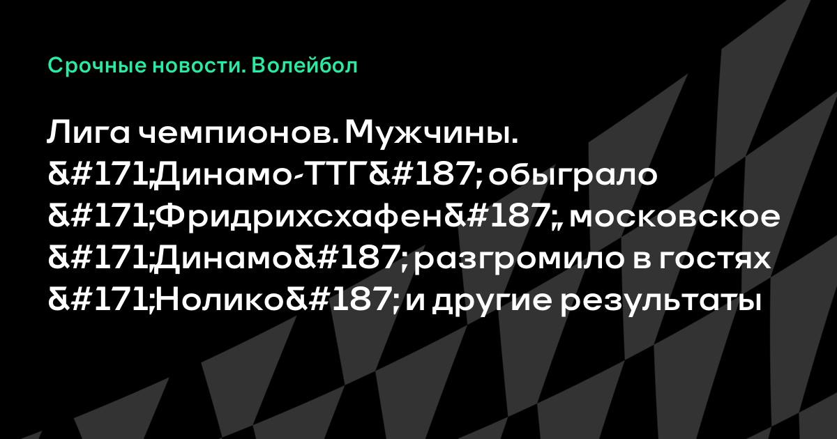 Лига чемпионов. Мужчины. «Динамо-ТТГ» обыграло «Фридрихсхафен», московское «Динамо» разгромило в гостях «Нолико» и другие результаты
