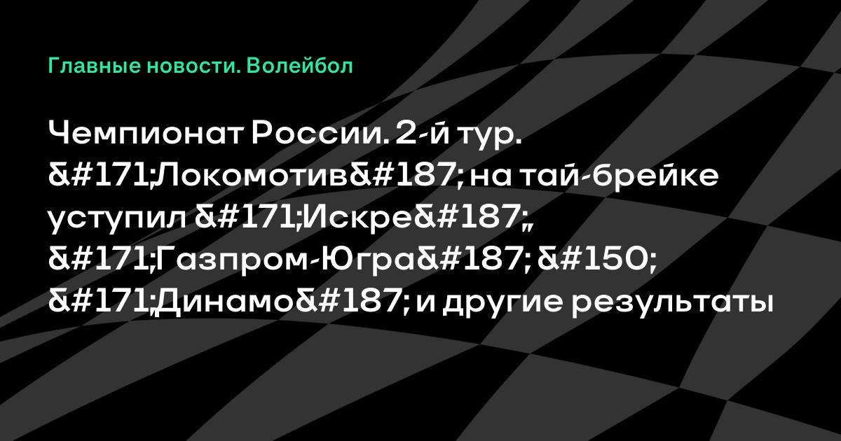 Чемпионат России. 2-й тур. «Локомотив» на тай-брейке уступил «Искре», «Газпром-Югра» «Динамо» и другие результаты