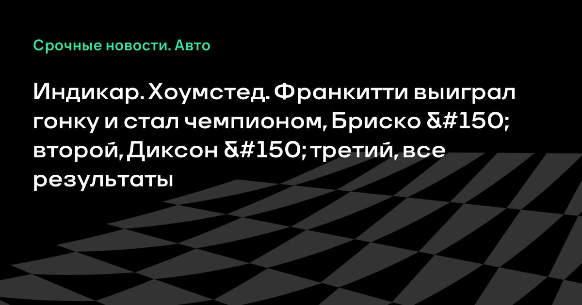Индикар. Хоумстед. Франкитти выиграл гонку и стал чемпионом, Бриско второй, Диксон третий, все результаты