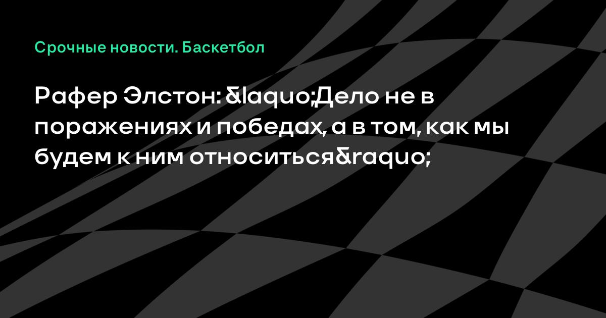 «Дело не в поражениях и победах, а в том, как мы будем к ним относиться. Это всегда играет для меня важнейшую роль. Если будем мириться с поражениями или слишком расслабляться после побед, у меня начнутся проблемы. Но мое расстройство точно никак не будет связано с игровым временем», сказал в интервью Элстон.