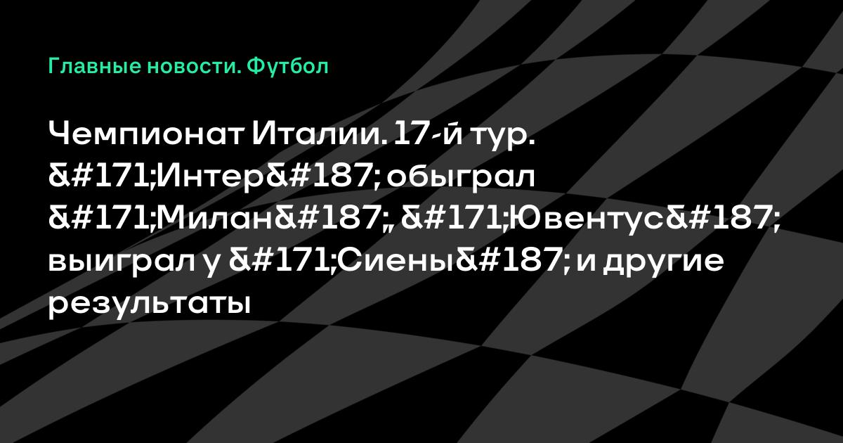 Чемпионат Италии. 17-й тур. «Интер» обыграл «Милан», «Ювентус» выиграл у «Сиены» и другие результаты