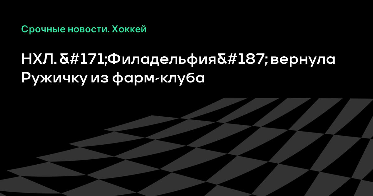 НХЛ. «Филадельфия» вернула Ружичку из фарм-клуба