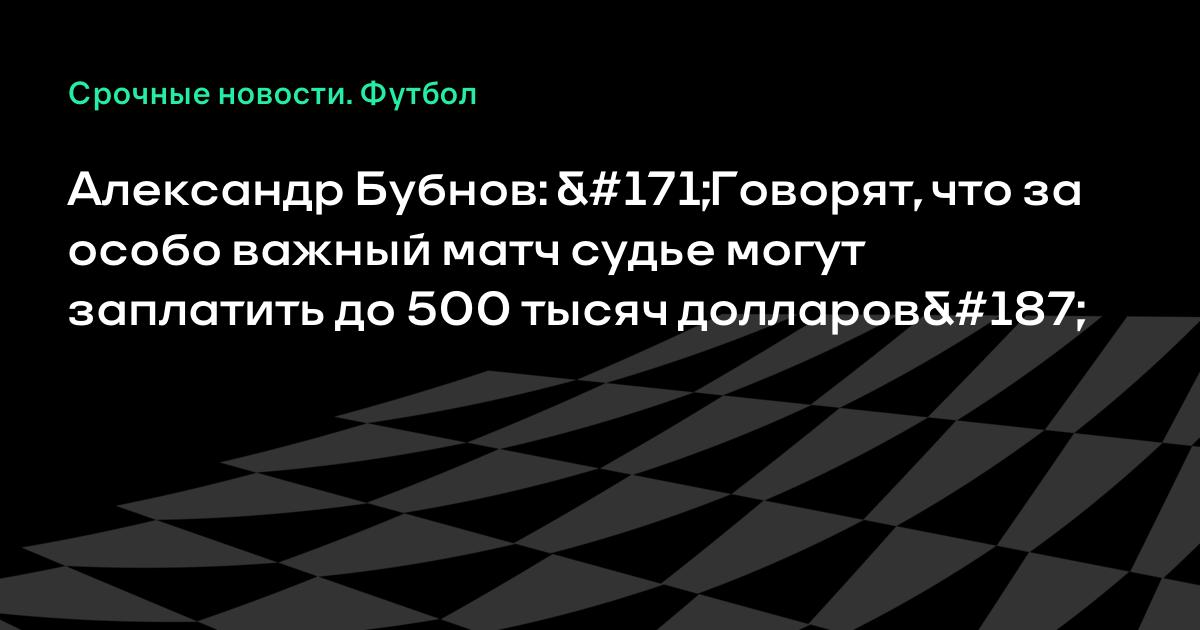 Александр Бубнов: «Говорят, что за особо важный матч судье могут заплатить до 500 тысяч долларов»
