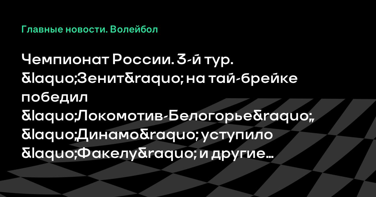 Чемпионат России. 3-й тур. «Зенит» на тай-брейке победил «Локомотив-Белогорье», «Динамо» уступило «Факелу» и другие результаты