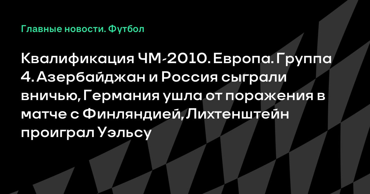 Квалификация ЧМ-2010. Европа. Группа 4. Азербайджан и Россия сыграли вничью, Германия ушла от поражения в матче с Финляндией, Лихтенштейн проиграл Уэльсу