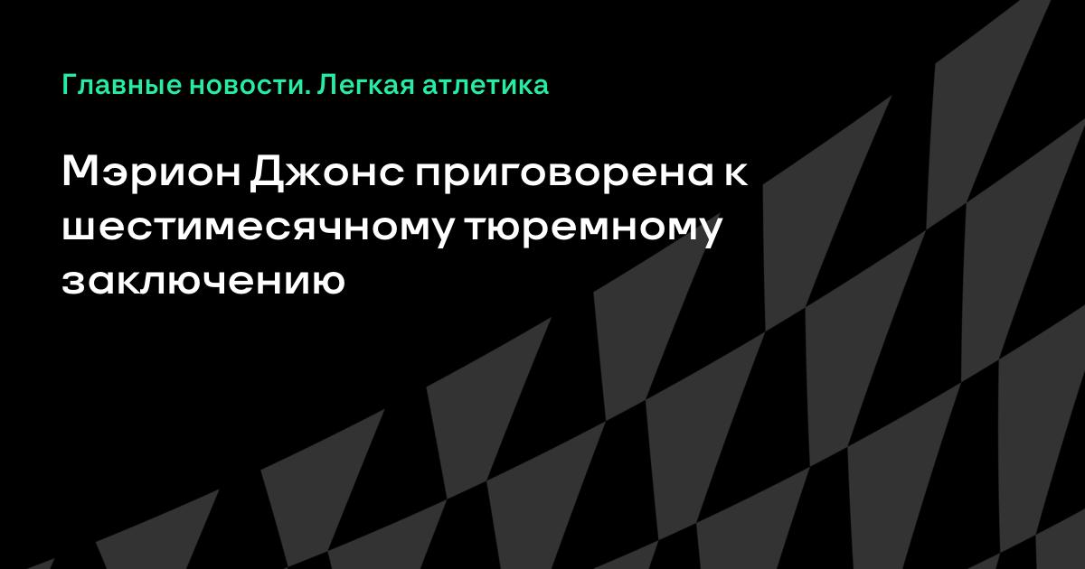 Экс-олимпийская чемпионка Мэрион Джонс приговорена к шести месяцам тюремного заключения за лжесвидетельство под присягой. В 2003 году американка солгала, что не принимала анаболические стероиды, в чем она добровольно созналась в прошлом году. Лишение ее всех олимпийский медалей Сиднея показалось недостаточным наказанием для суда, сообщает АР.