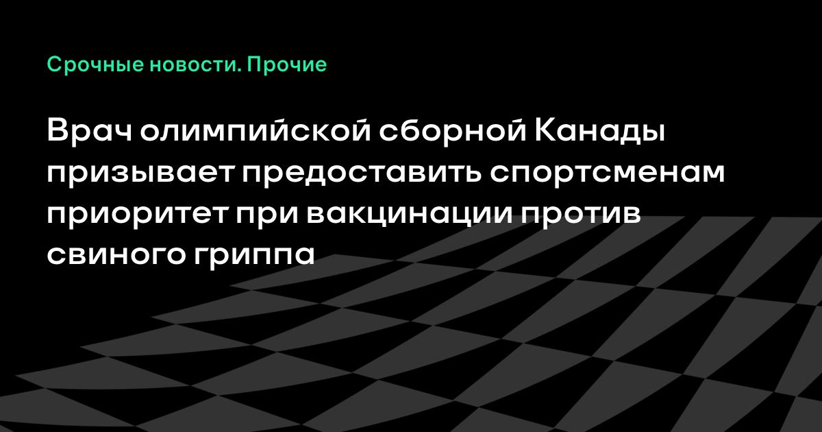 Врач олимпийской сборной Канады призывает предоставить спортсменам приоритет при вакцинации против свиного гриппа