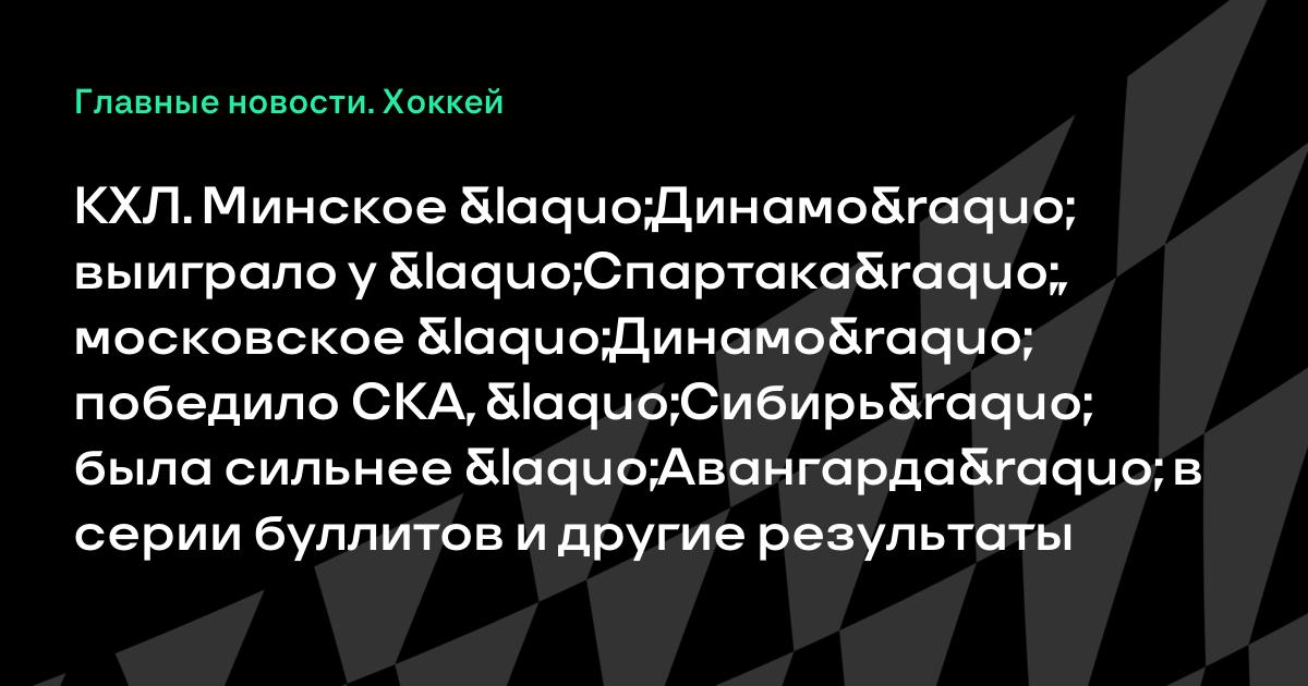 КХЛ. Минское «Динамо» выиграло у «Спартака», московское «Динамо» победило СКА, «Сибирь» была сильнее «Авангарда» в серии буллитов и другие результаты