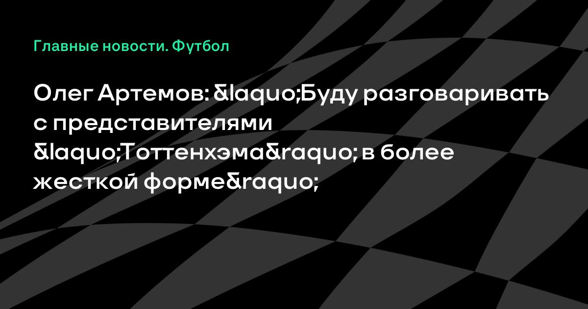 Олег Артемов: «Буду разговаривать с представителями «Тоттенхэма» в более жесткой форме»