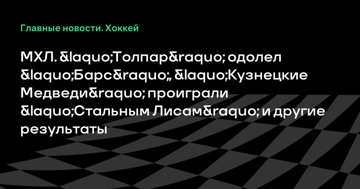 МХЛ. «Толпар» одолел «Барс», «Кузнецкие Медведи» проиграли «Стальным Лисам» и другие результаты
