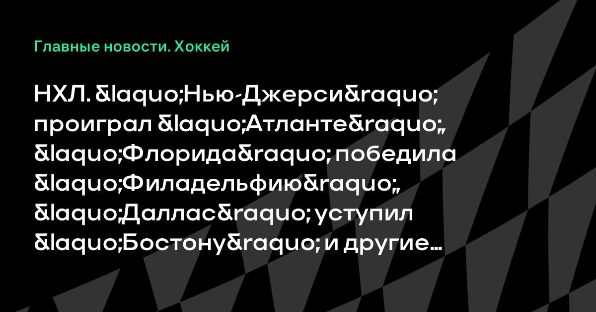 НХЛ. «Нью-Джерси» проиграл «Атланте», «Флорида» победила «Филадельфию», «Даллас» уступил «Бостону» и другие результаты