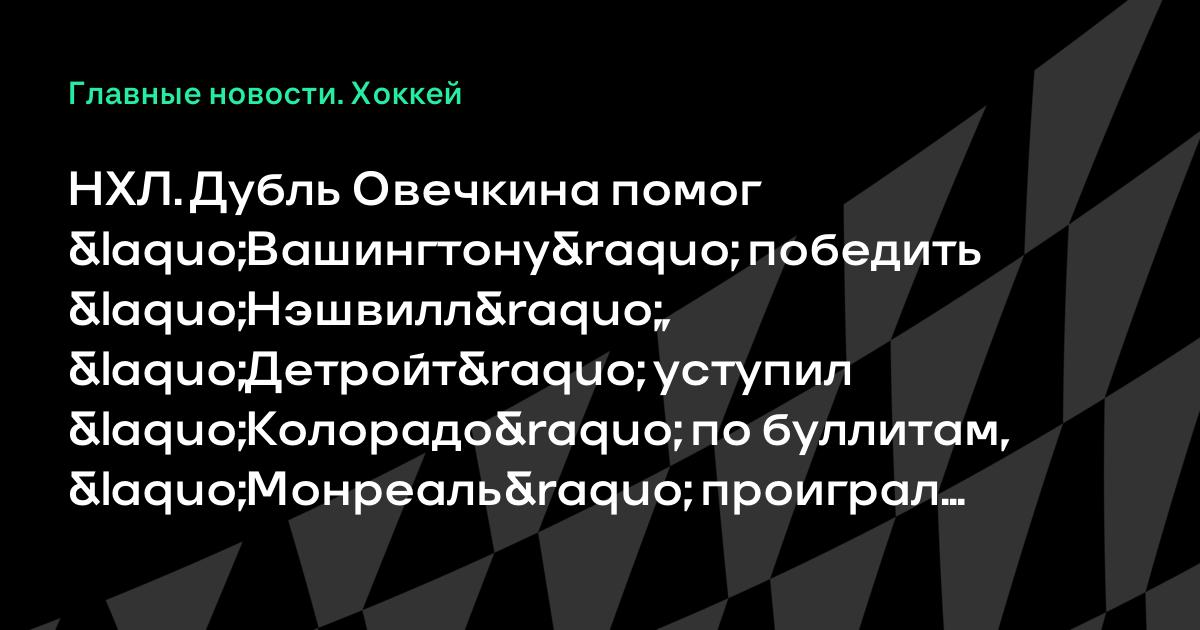 НХЛ. Дубль Овечкина помог «Вашингтону» победить «Нэшвилл», «Детройт» уступил «Колорадо» по буллитам, «Монреаль» проиграл «Оттаве», «Питтсбург» одолел «Тампа-Бэй» и другие результаты
