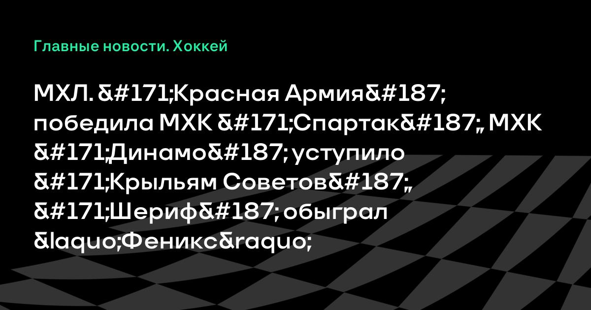 МХЛ. «Красная Армия» победила МХК «Спартак», МХК «Динамо» уступило «Крыльям Советов», «Шериф» обыграл «Феникс»