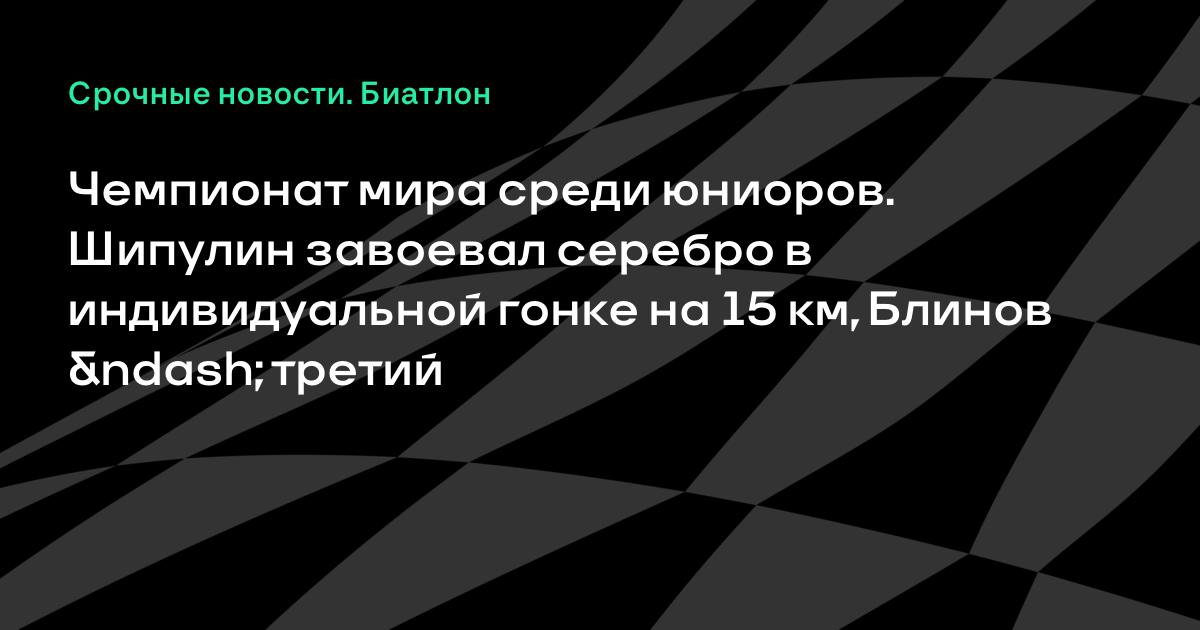 Чемпионат мира среди юниоров. Шипулин завоевал серебро в индивидуальной гонке на 15 км, Блинов – третий