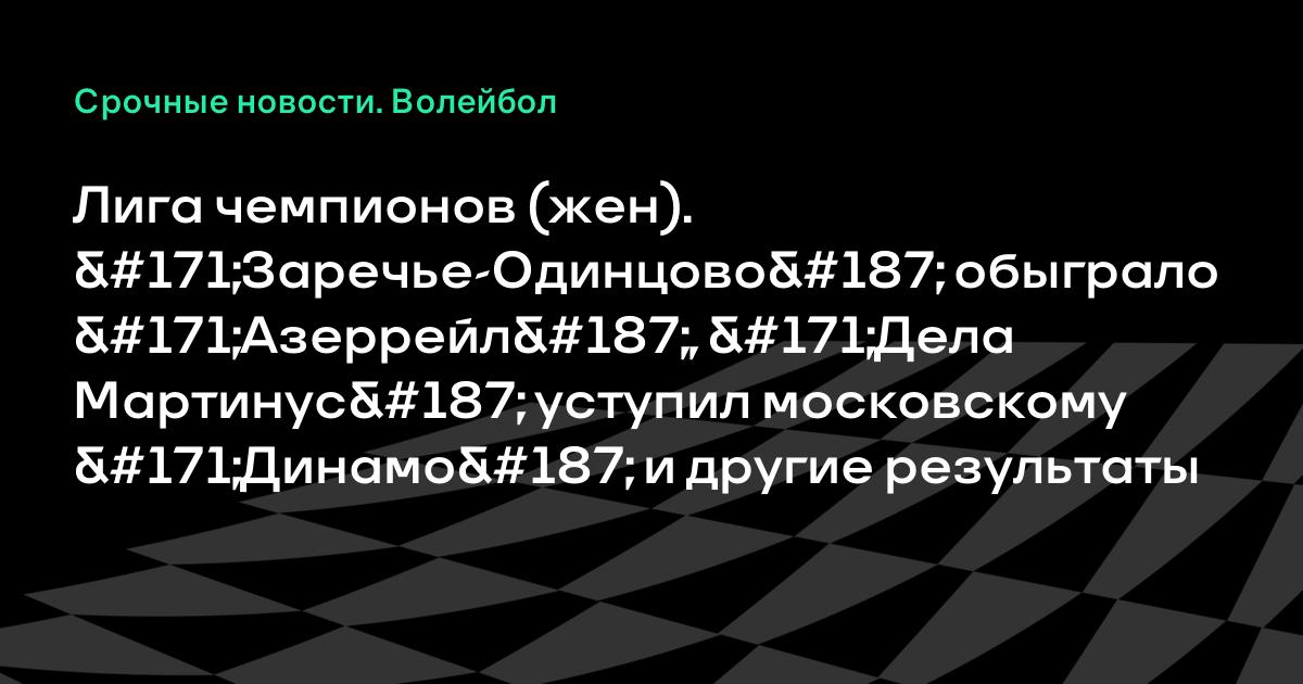 Лига чемпионов (жен). «Заречье-Одинцово» обыграло «Азеррейл», «Дела Мартинус» уступил московскому «Динамо» и другие результаты
