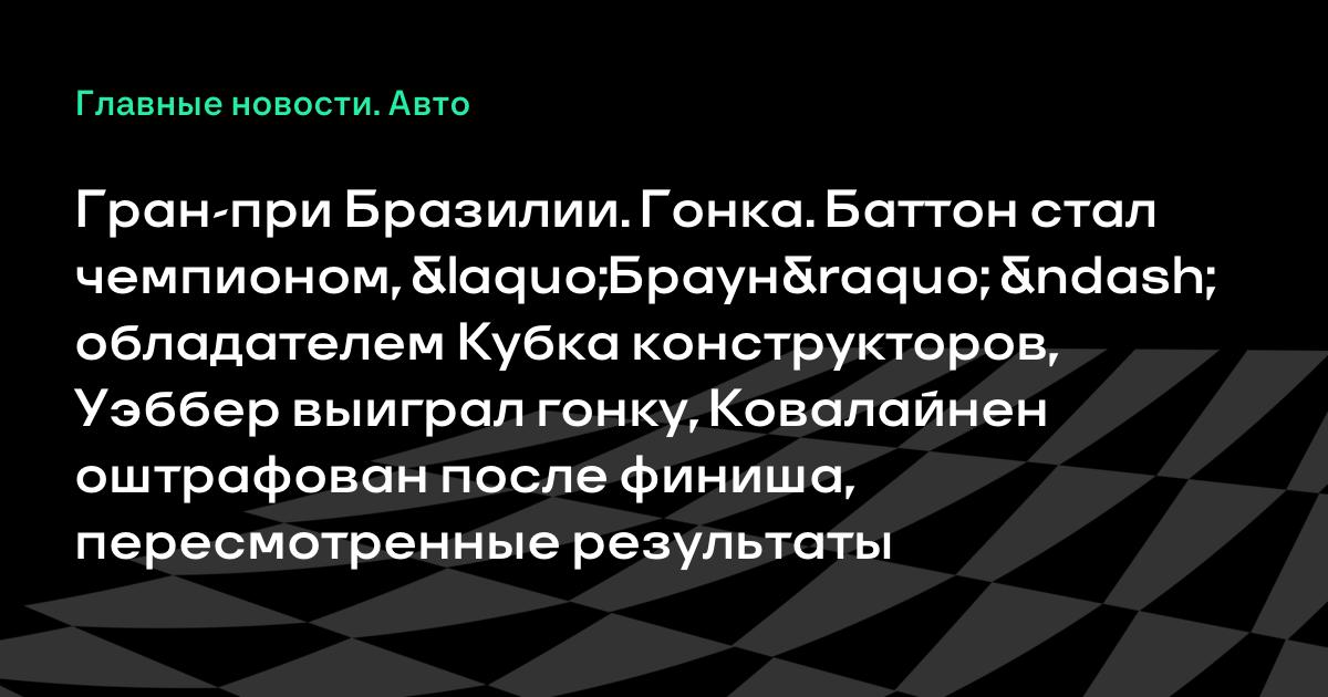 Гран-при Бразилии. Гонка. Баттон стал чемпионом, «Браун» – обладателем Кубка конструкторов, Уэббер выиграл гонку, Ковалайнен оштрафован после финиша, пересмотренные результаты