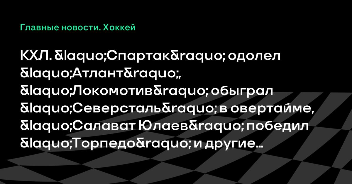КХЛ. «Спартак» одолел «Атлант», «Локомотив» обыграл «Северсталь» в овертайме, «Салават Юлаев» победил «Торпедо» и другие результаты