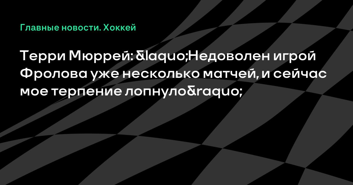 Терри Мюррей: «Недоволен игрой Фролова уже несколько матчей, и сейчас мое терпение лопнуло»