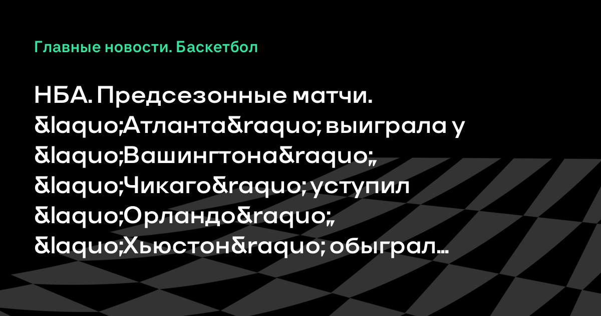 НБА. Предсезонные матчи. «Атланта» выиграла у «Вашингтона», «Чикаго» уступил «Орландо», «Хьюстон» обыграл «Оклахома-Сити»