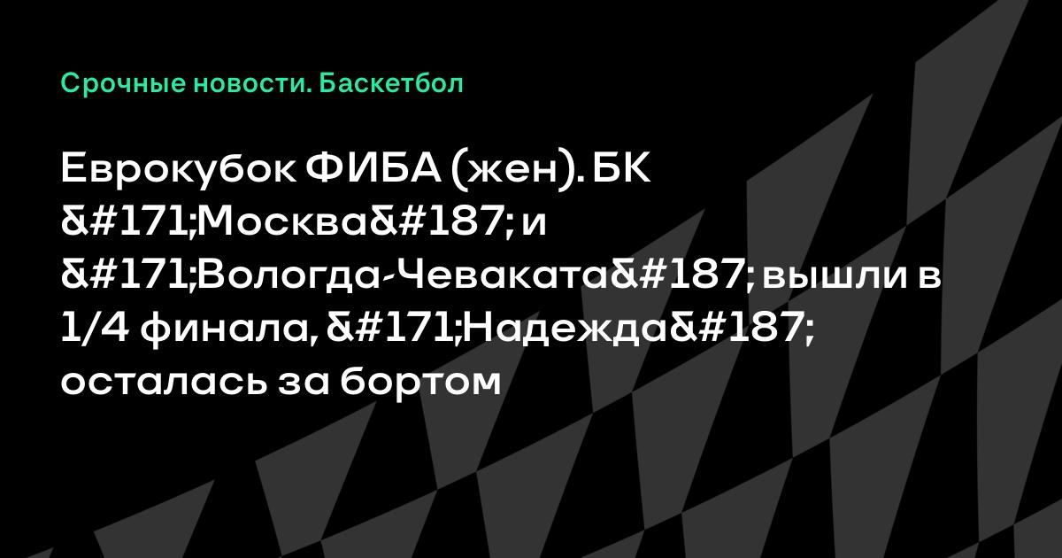 Еврокубок ФИБА (жен). БК «Москва» и «Вологда-Чеваката» вышли в 1/4 финала, «Надежда» осталась за бортом