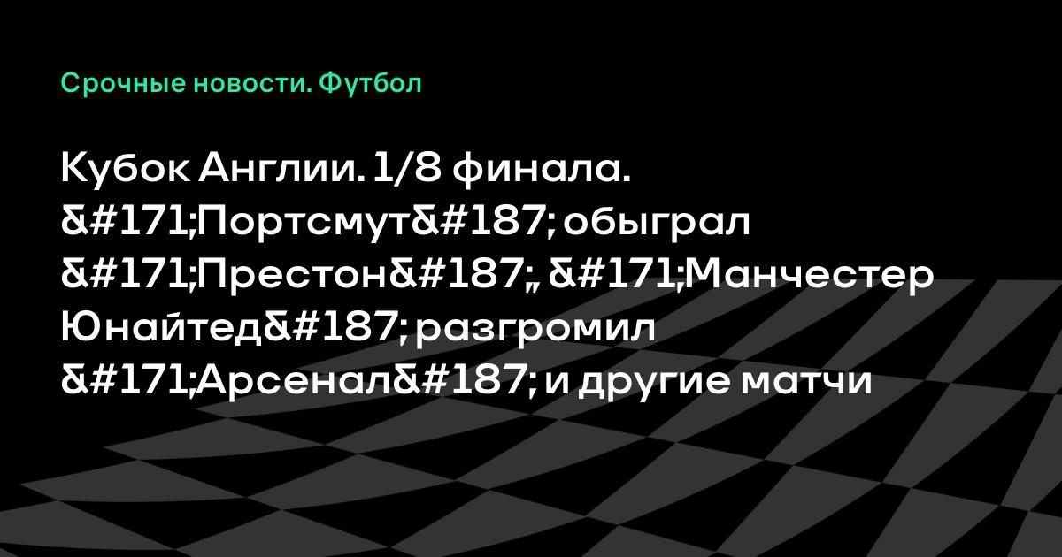 Кубок Англии. 1/8 финала. «Портсмут» обыграл «Престон», «Манчестер Юнайтед» разгромил «Арсенал» и другие матчи