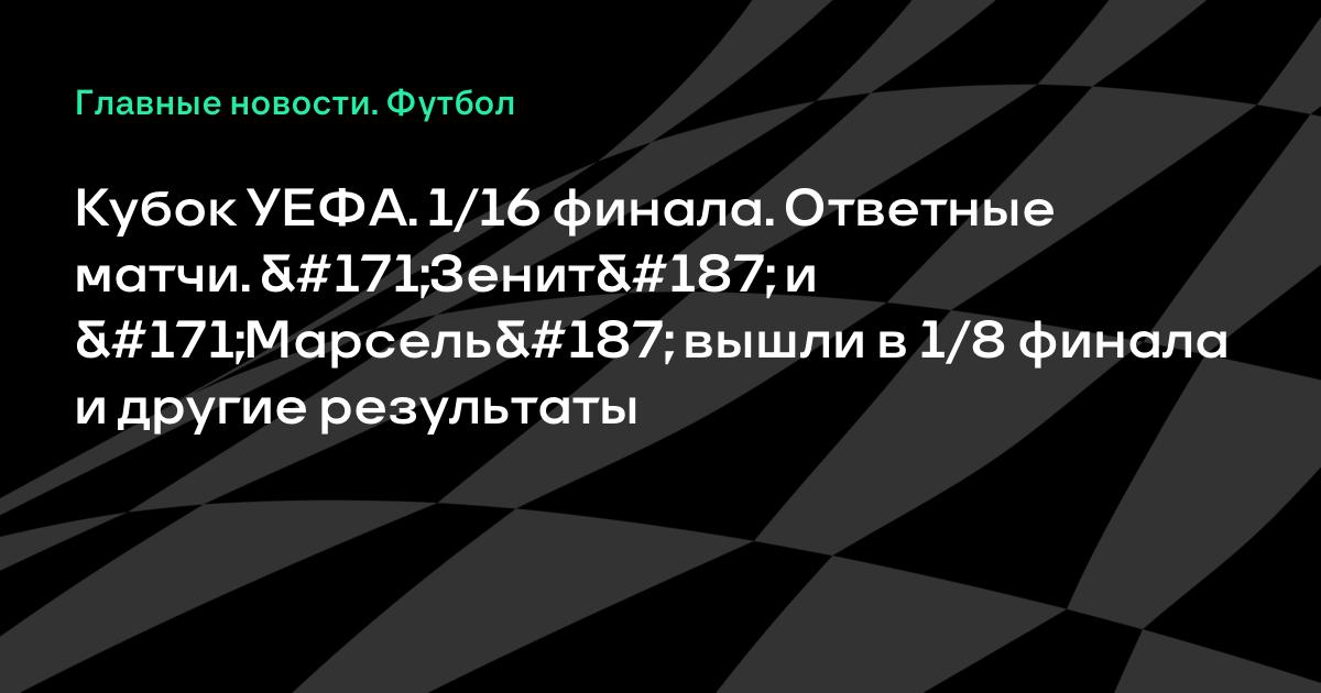 Кубок УЕФА. 1/16 финала. Ответные матчи. «Зенит» и «Марсель» вышли в 1/8 финала и другие результаты