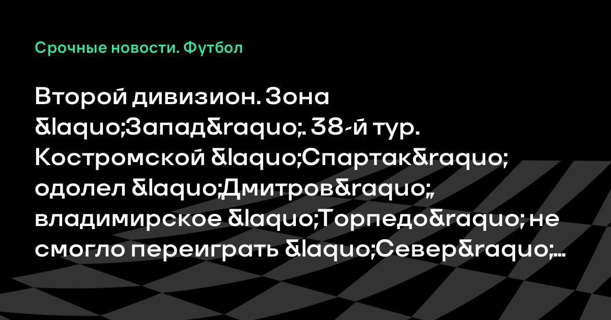 Второй дивизион. Зона «Запад». 38-й тур. Костромской «Спартак» одолел «Дмитров», владимирское «Торпедо» не смогло переиграть «Север» и другие результаты