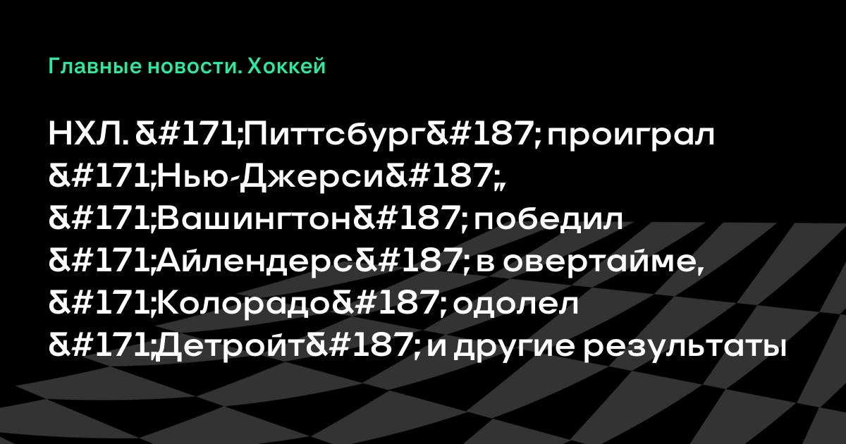 НХЛ. «Питтсбург» проиграл «Нью-Джерси», «Вашингтон» победил «Айлендерс» в овертайме, «Колорадо» одолел «Детройт» и другие результаты