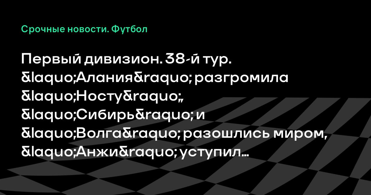 Первый дивизион. 38-й тур. «Алания» разгромила «Носту», «Сибирь» и «Волга» разошлись миром, «Анжи» уступил «Лучу-Энергии» и другие матчи