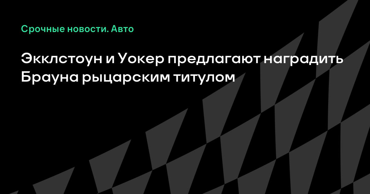 Промоутер чемпионата мира «Формулы-1» Берни Экклстоун и знаменитый британский комментатор Марри Уокер считают, что за свои достижения в королевских автогонках Росс Браун, команда которого одержала победу в личном зачете с Дженсоном Баттоном и Кубке конструкторов в этом сезоне, заслуживает рыцарского титула.