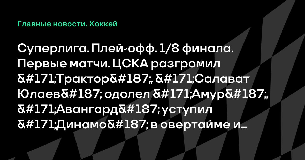 Суперлига. Плей-офф. 1/8 финала. Первые матчи. ЦСКА разгромил «Трактор», «Салават Юлаев» одолел «Амур», «Авангард» уступил «Динамо» в овертайме и другие матчи