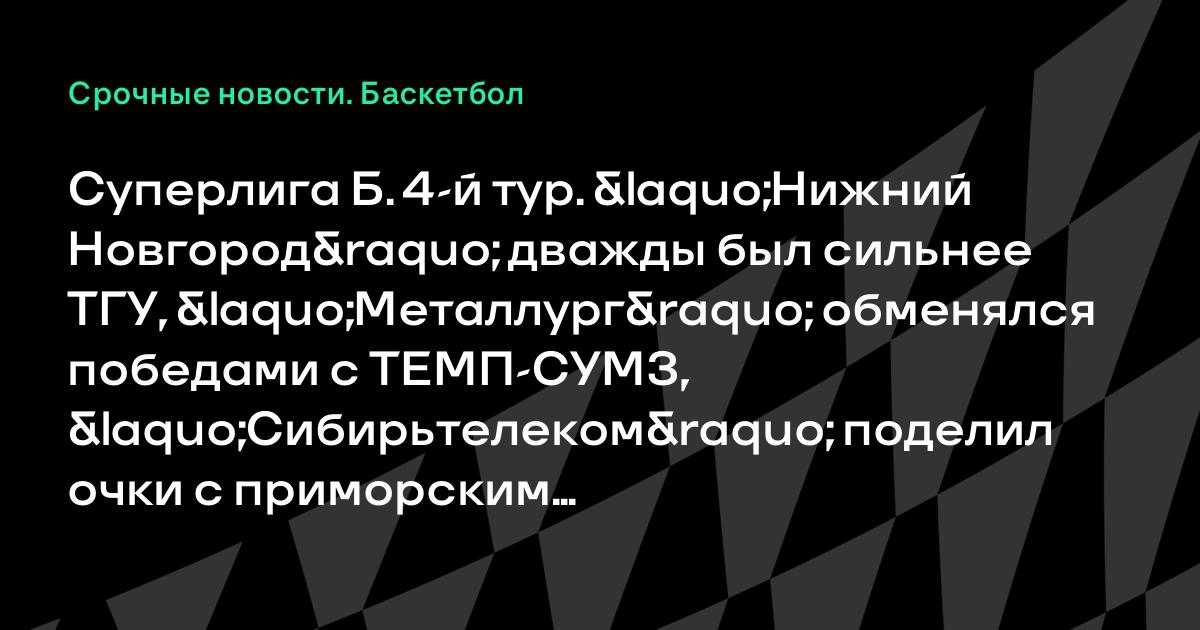 Суперлига Б. 4-й тур. «Нижний Новгород» дважды был сильнее ТГУ, «Металлург» обменялся победами с ТЕМП-СУМЗ, «Сибирьтелеком» поделил очки с приморским «Спартаком» и другие результаты