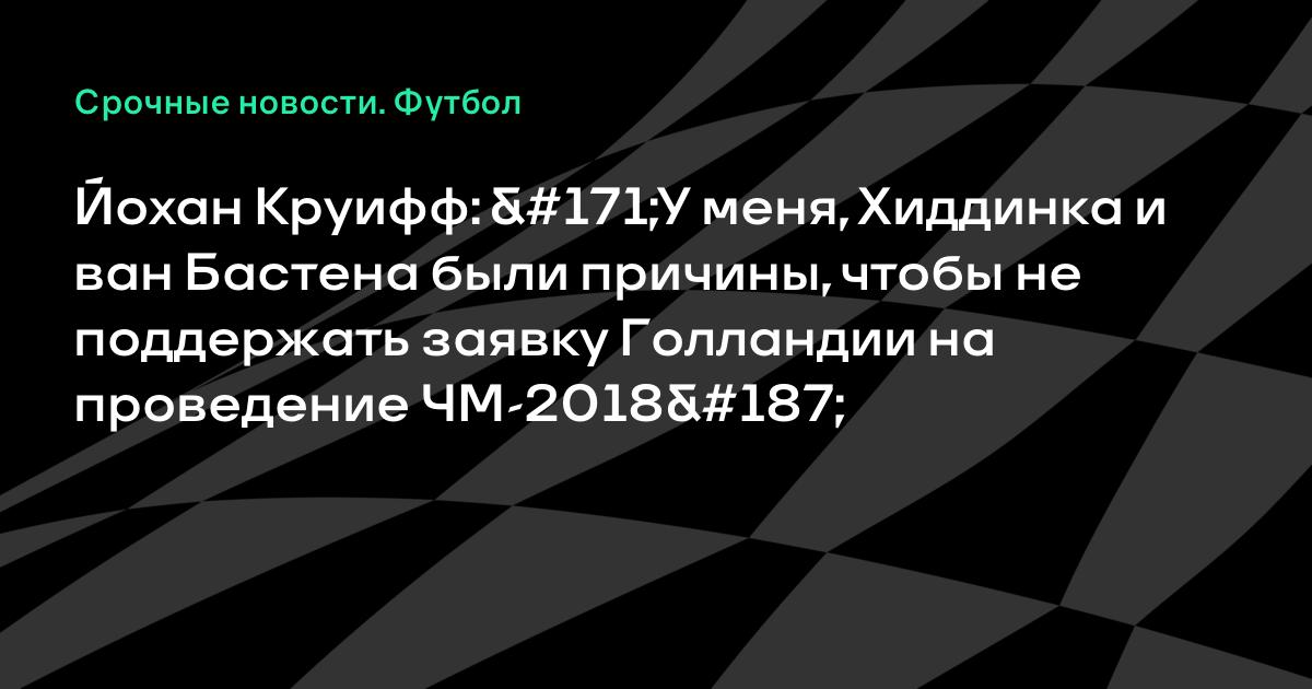 Бывший тренер «Барселоны» Йохан Круифф объяснил, почему он, Марко ван Бастен и тренер сборной России Гус Хиддинк отказались возглавить заявку Голландии на право проведения ЧМ-2018.