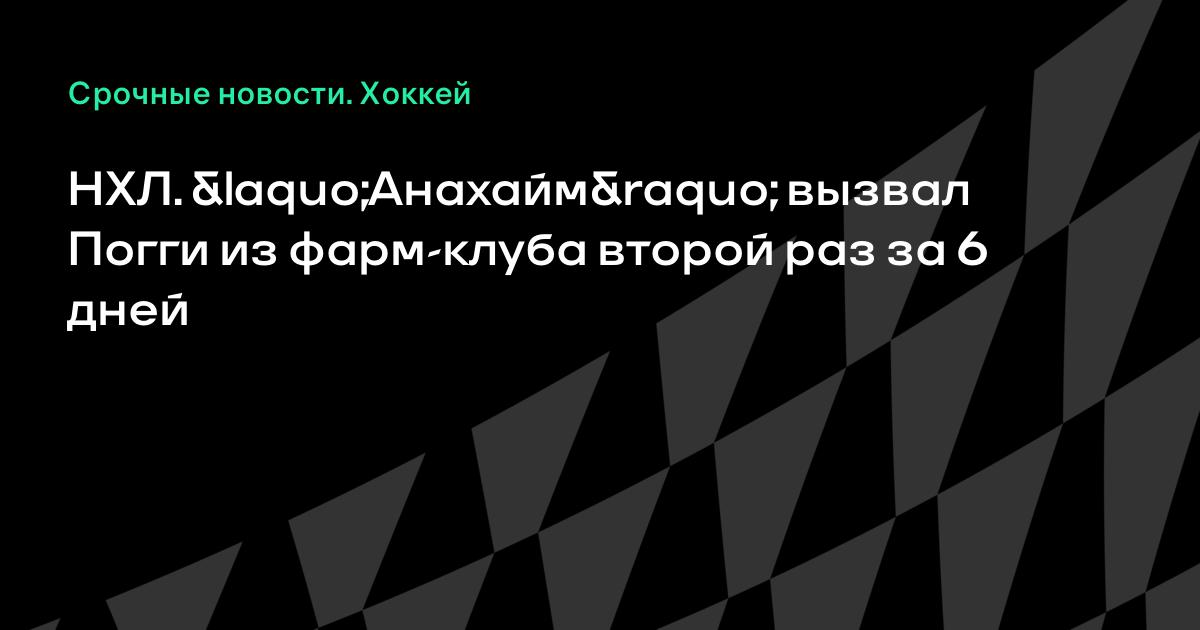 НХЛ. «Анахайм» вызвал Погги из фарм-клуба второй раз за 6 дней