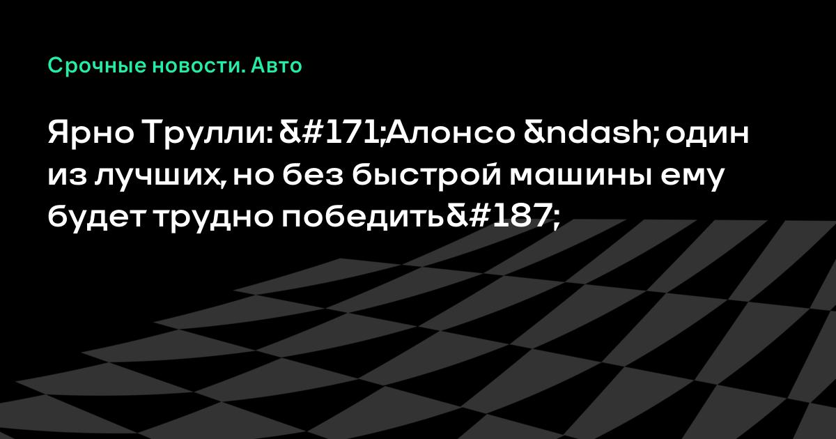 Ярно Трулли: «Алонсо – один из лучших, но без быстрой машины ему будет трудно победить»