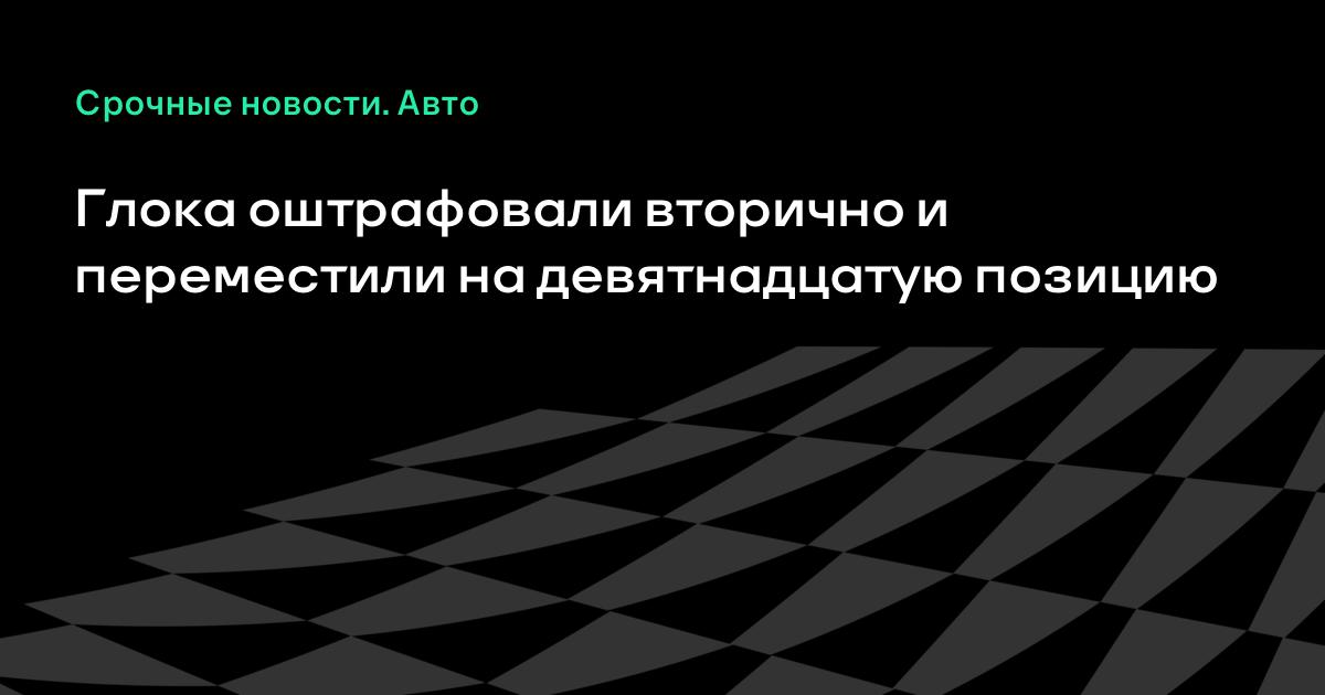 Глока оштрафовали вторично и переместили на девятнадцатую позицию