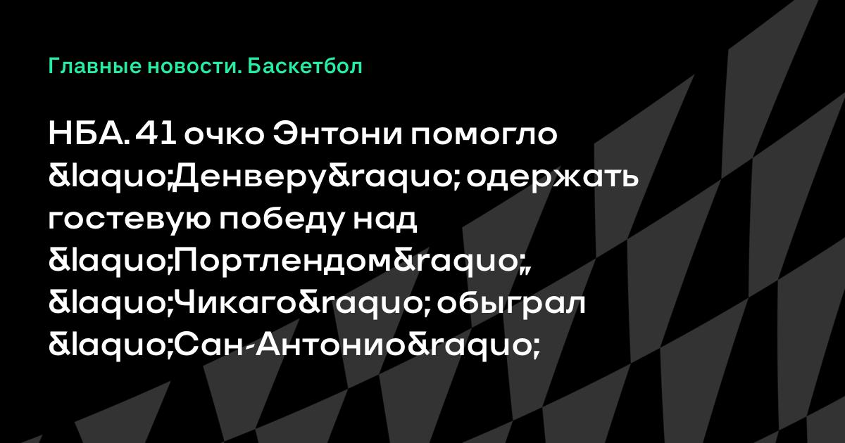 НБА. 41 очко Энтони помогло «Денверу» одержать гостевую победу над «Портлендом», «Чикаго» обыграл «Сан-Антонио»
